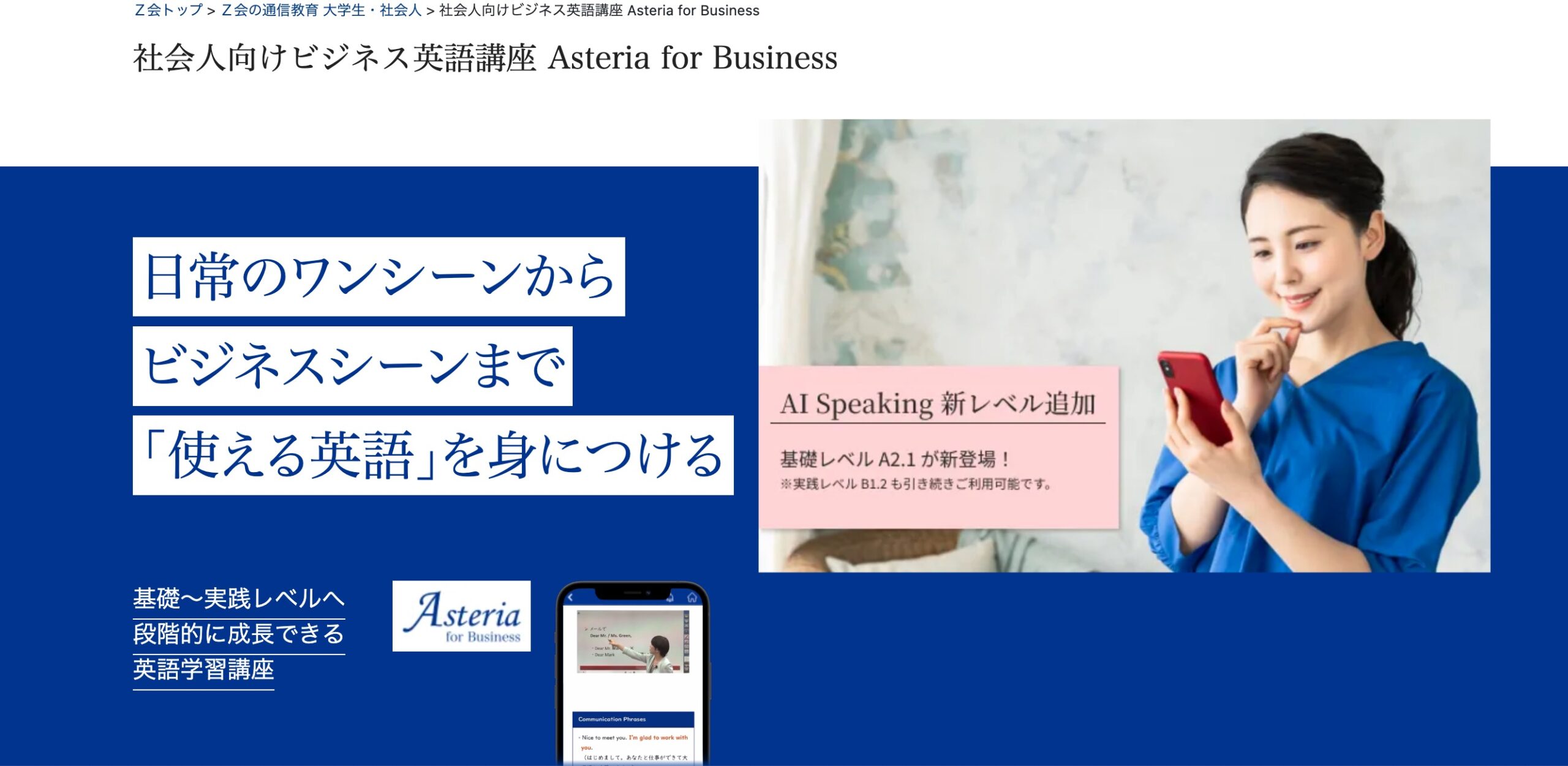 Z会英語講座【Asteria for Business / Adaptie】社会人のための特徴