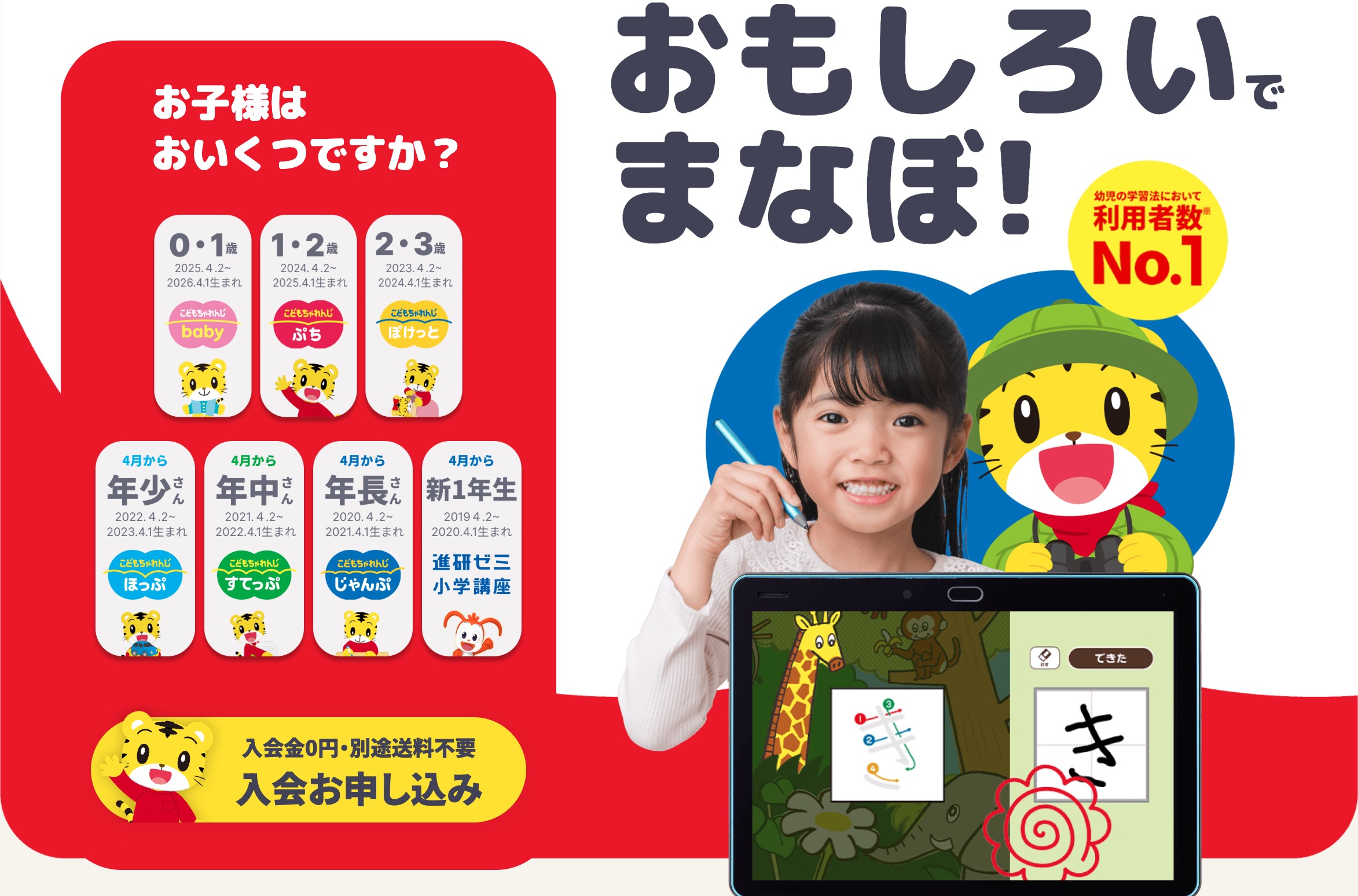2026年度〈こどもちゃれんじぷち〉〈こどもちゃれんじぽけっと〉〈こどもちゃれんじほっぷ〉〈こどもちゃれんじすてっぷ〉〈こどもちゃれんじじゃんぷ〉4月号からご入会の方が対象