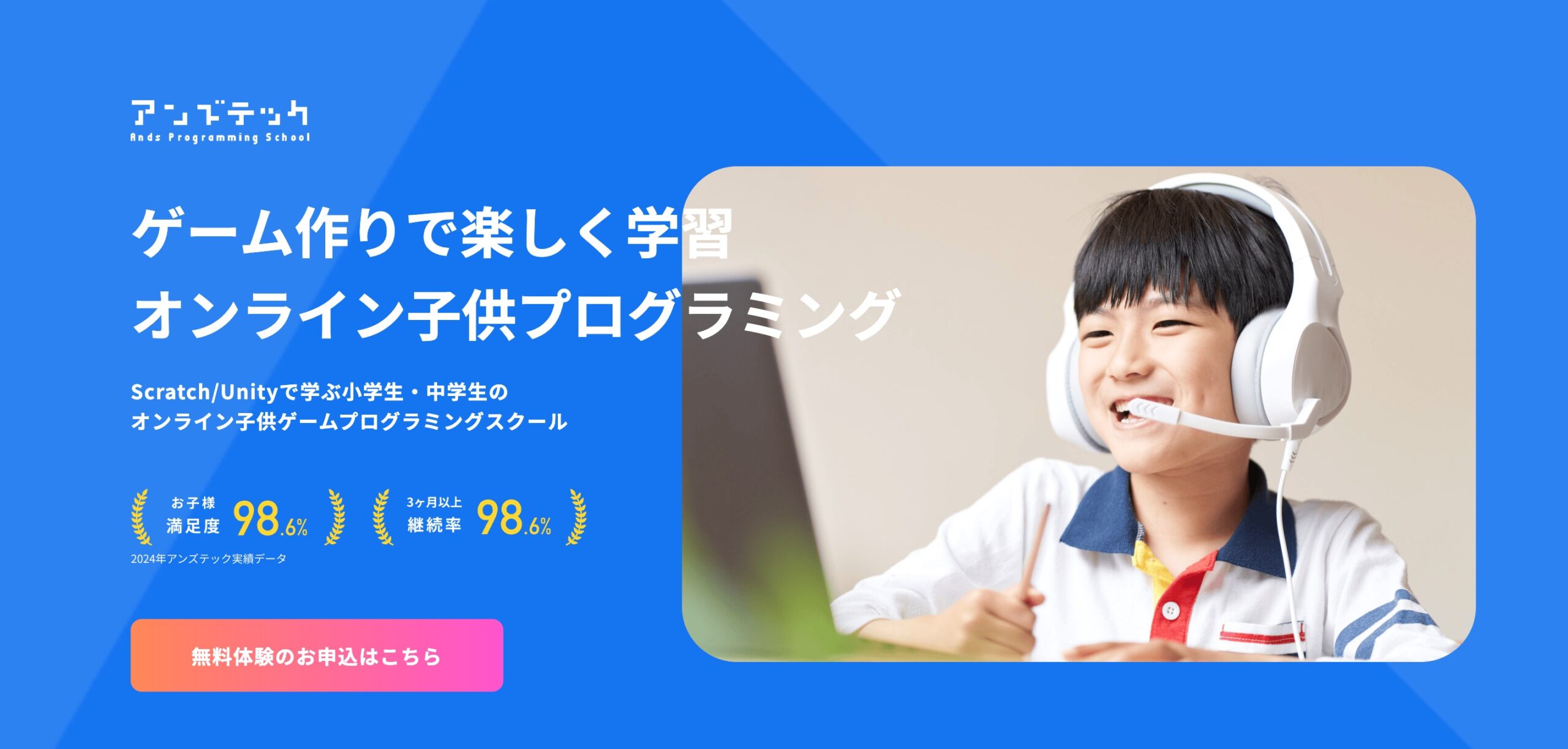 アンズテックは、小中学生向けのオンラインプログラミングスクールです。