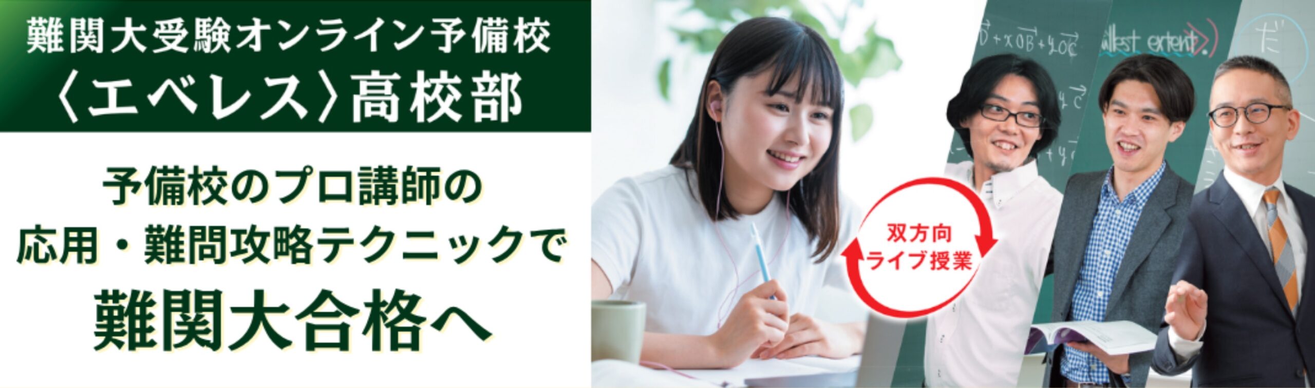 エベレス高校部は、難関大学を目指す高校生向けに設計されたオンライン塾です。自宅で学習を進めながら、効率よく対策を行える点が特徴です。